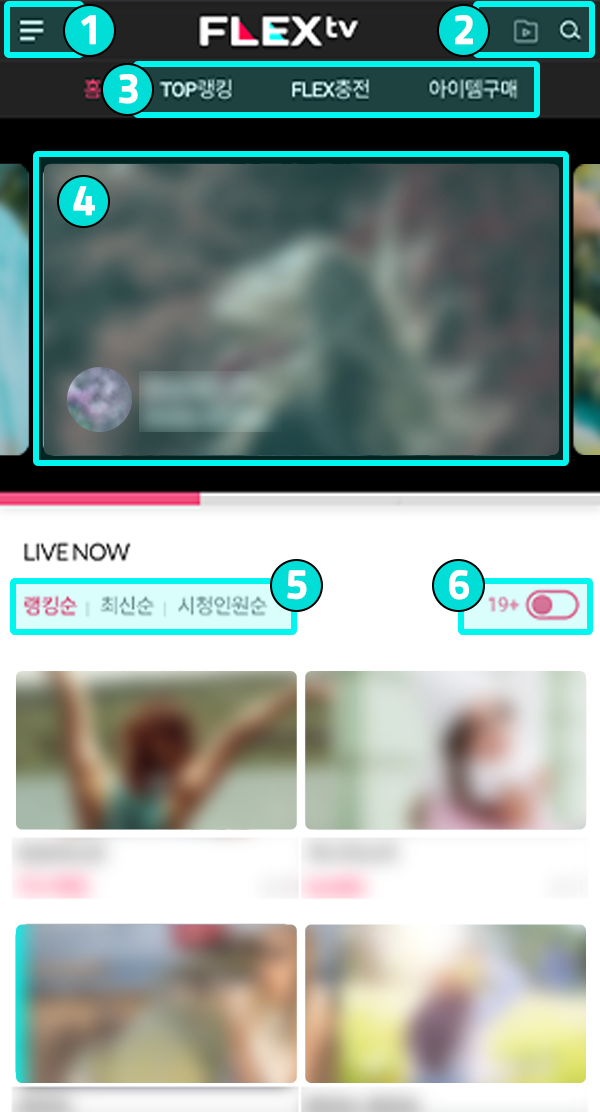 6. TOP랭킹, 최근 본 방송 등 원하는 페이지로 이동이 가능합니다.