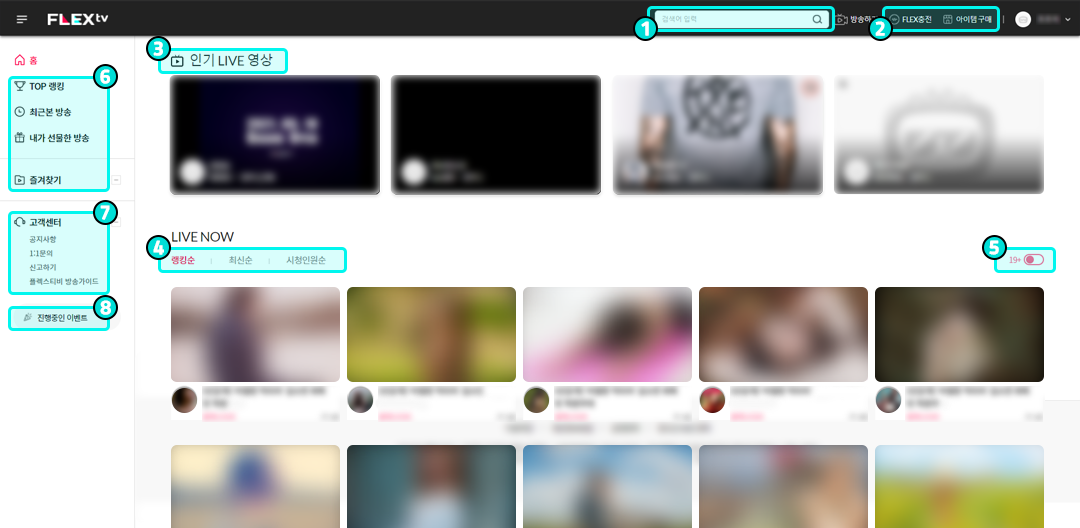 5. 전체 라이브방송들의 정렬을 설정할 수 있습니다.